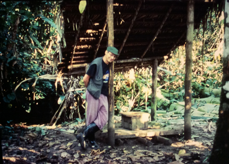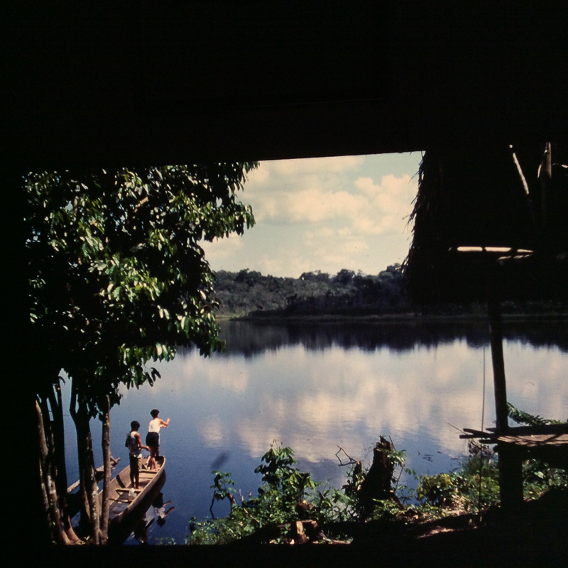 Nell’ estate del ’96 mi trovavo, con Sandra Perugini e Massimo Bartoletti, in un rustico campamento sulle rive del Rio Napo (ancora in Ecuador, ma già all’interno del bacino amazzonico). Esisteva, non lontano dalla nostra palafitta, una sorta di toilette che faceva pensare a un trono di legno, piazzato su una pedana di tronchi e sormontato da una sorta di padiglione.