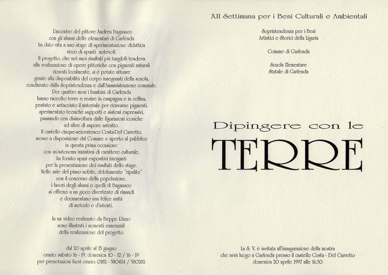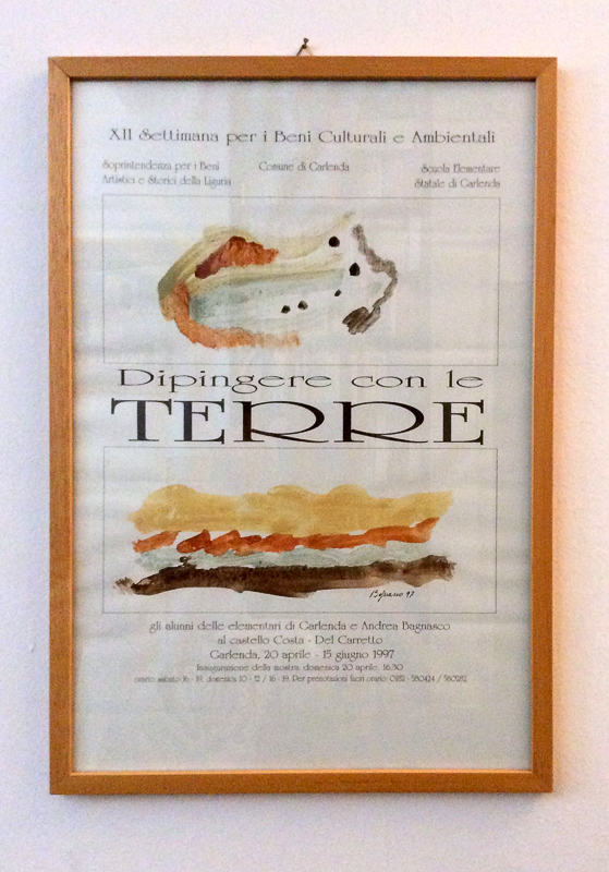 La mostra nel castello di Garlenda, Dipingere con le terre, risale alla primavera del 1997: le lenzuola dipinte dalla squadra dei ragazzini restavano esposte con pari dignità accanto alle tele di Andrea Bagnasco, mentre le locandine (e addirittura, gli inviti) erano state stampate lasciando due spazi vuoti, a disposizione di entrambi. “Così”, diceva lui, “ognuna diventa importante, un pezzo unico”.