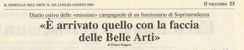 Franco Boggero, «È arrivato quello con la faccia delle Belle Arti», in “Il Giornale dell’Arte”, 245, luglio-agosto 2005.