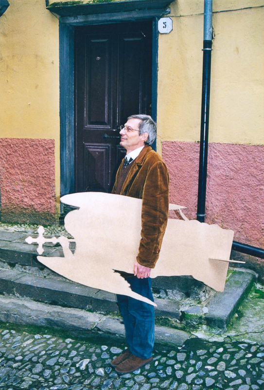 Nei primi anni di questo secolo (e comunque prima del 2004), mi aggiravo per le strade di Pigna con una sagoma di legno. Le misure, 132 x 70 cm, erano quelle di un San Michele Arcangelo, una scultura (o meglio, un altorilievo in legno dipinto e dorato) appena restaurata, e senza fissa dimora.