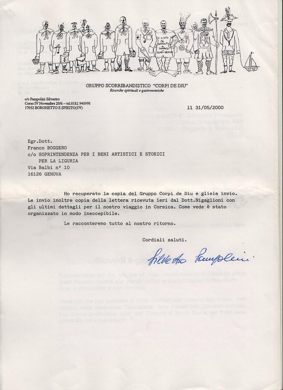 Il quadro, all’altar maggiore della parrocchiale di Borghetto Santo Spirito, era stato restaurato a spese dello Stato: un piccolo investimento dalle conseguenze inimmaginabili. I Borghettini finiranno infatti per adottare il pittore, un genovese che nel Ponente ligure – e a Borghetto in particolare – si era ricavato un discreto spazio di mercato. Finanzieranno, così, il restauro di altri suoi dipinti presenti in paese, e organizzeranno addirittura una sorta di pellegrinaggio-scorribanda a Cap Corse (il “ditone” della Corsica), dove negli anni ’40 del Seicento Giuseppe aveva avuto un certo successo, e lasciato diversi dipinti. In una pala d’altare della parrocchiale (una di quelle restaurate a spese della comunità), spicca una veduta del paese murato: nucleo abitativo che oggi esiste ancora, ma è quasi annullato dalla presenza di tanti giganti condominiali. Piace l’idea che per realizzarla il pittore abbia preso i suoi appunti grafici al largo, su una barchetta, come ci lascia immaginare la tempera di Elena Pongiglione.